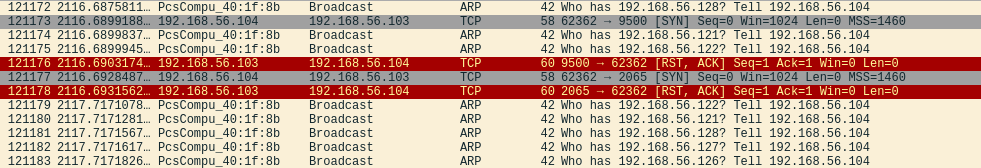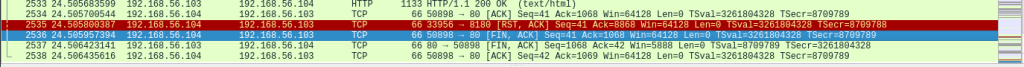 During the testing and demonstration of the scan mode I ran into a problem: the ARP query was performed in the local network despite the set parameters, which set the available IP addresses anyways. So running Nmap with and without the “-Pn” parameter resulted exactly in the same number of packets sent and received. To overcome the limitation I had to use the “–disable-arp-ping” parameter (https://nmap.org/book/man-host-discovery.html section “-Pn”). With this parameter, the traffic generated multiplied exponentially. I was left with a question after analyzing the traffic: why does the SYN scan generate so much traffic over ARP protocol during the scan? Is this related to the fact that the test was done in a local network and the routing uses ARP protocol? And since there is no reply from the target port, the TCP connection is never established and only the ARP traffic is shown? For open ports the scan performed half of the TCP handshake as expected (see image below). The initial host discovery was skipped, but the traffic dump ended up having multiple tens of thousands of packets using the ARP protocol during the scan.