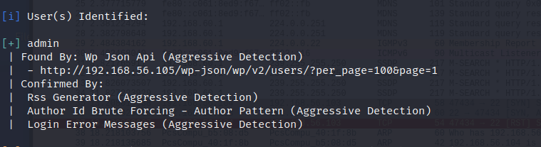 The results offered information about possible vulnerabilities the site has, ranging from configuration mistakes to outdated and dangerous plugins. I wanted to take things a step further and test the enumeration and brute forcing. First I had to enumerate the usernames. Enumeration is activated with parameter “-e” and it can be used for enumerating different types. User enumeration is achieved with option “u<id-range>”. More information can be found in the tool’s help page. The command I used to enumerate users was “wpscan -url 192.168.56.105 -e u1-10”, which enumerates user ids between 1 and 10. The result was positive, one username was found: admin.
